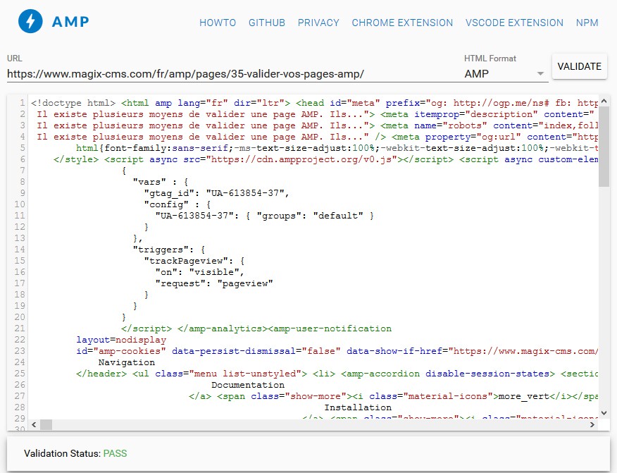 - Validation en ligne sur le site https://validator.ampproject.org/